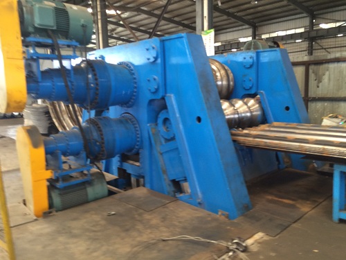(9)上輥一端含有導(dǎo)頭裝置可翻倒,便于整圓工件卸料。